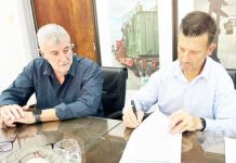 El presidente de la Cooperativa de Electricidad y Servicios Anexos de Zárate (CEZ), José Luis Mangini, y el titular de la empresa Terminal Zárate...